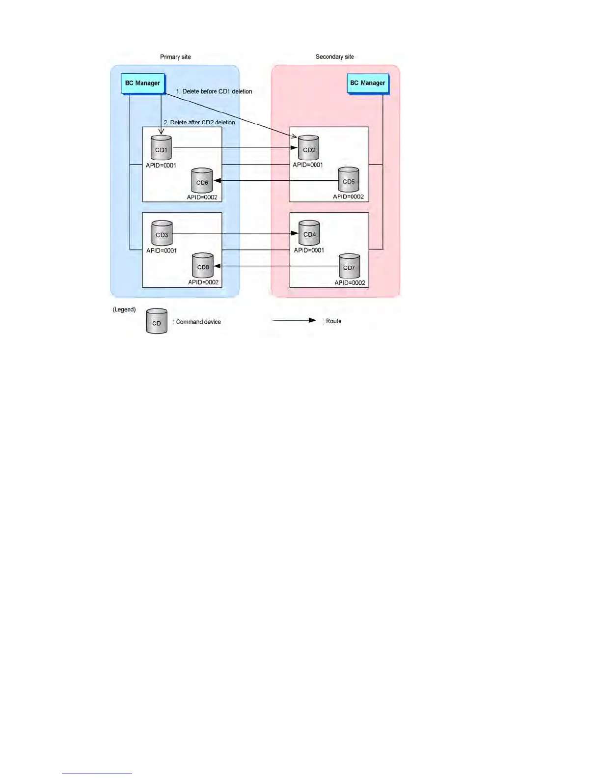 secondary site, or delete it as you would delete a command device not registered in the route list.