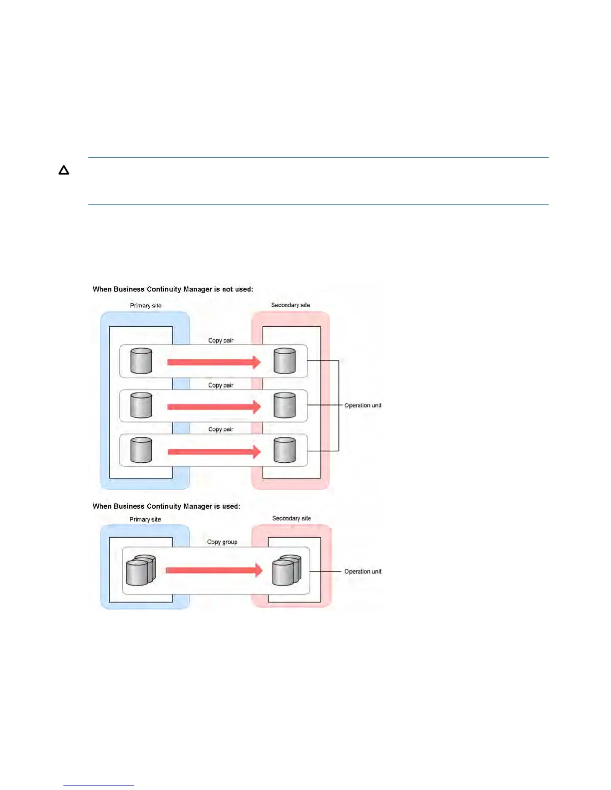 Business Continuity Manager can group together copy pairs to improve the operability of managing