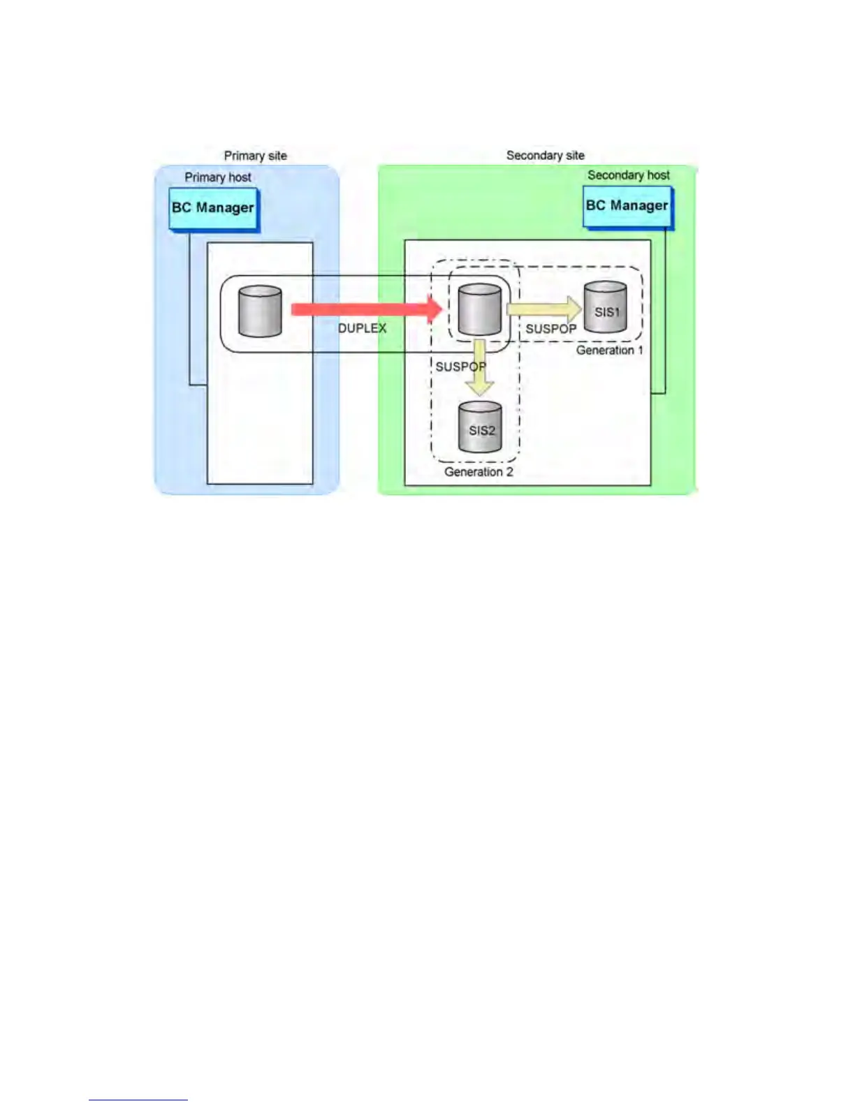 Copy S-VOLs (SIS1 and SIS2) in the following figure contain the data that was backed up when