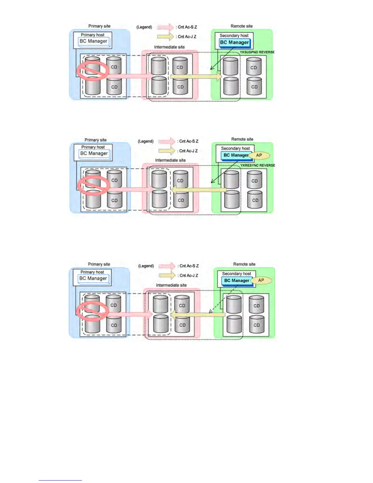 4. From the secondary host, execute the YKRESYNC REVERSE command for the Cnt Ac-J Z copy
