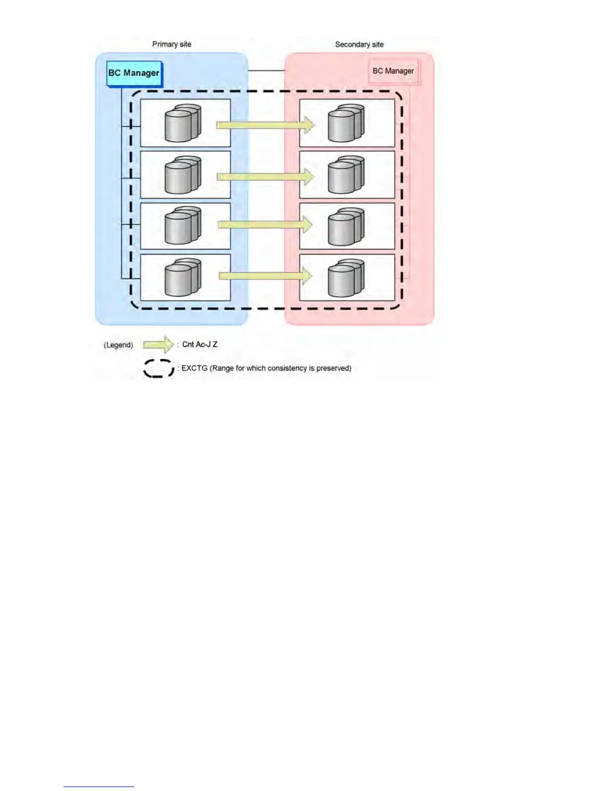 This configuration can preserve consistency across multiple storage systems in an EXCTG.