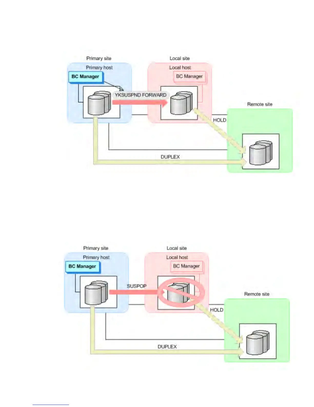 1. From the primary site, execute the YKSUSPND FORWARD command for the Continuous Access