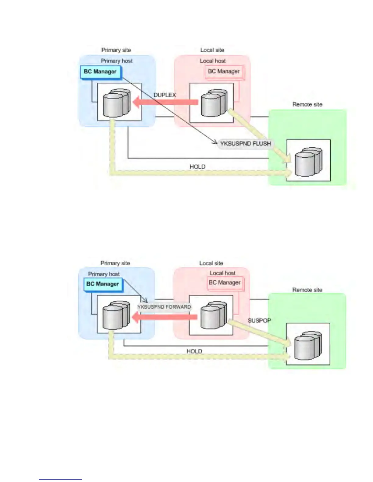 7. From the primary site, execute the YKSUSPND FLUSH command for the Continuous Access