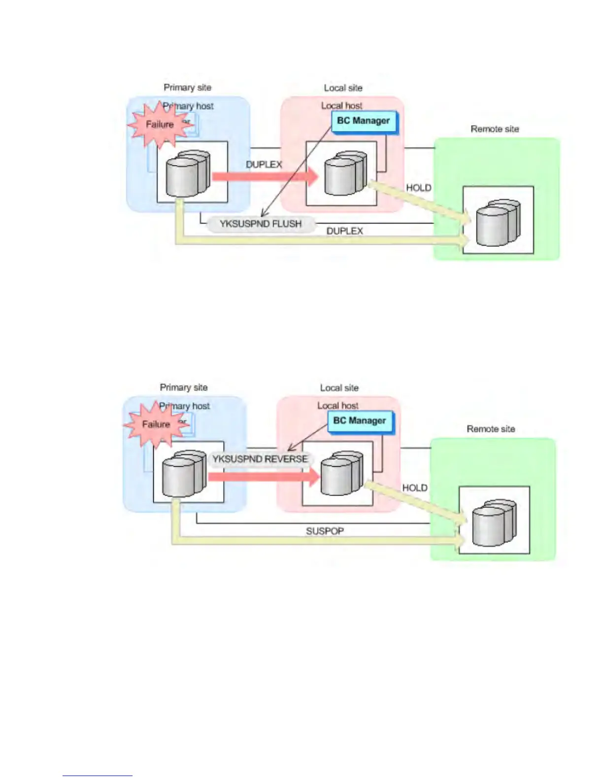 2. From the local site, execute the YKSUSPND REVERSE command for the Continuous Access