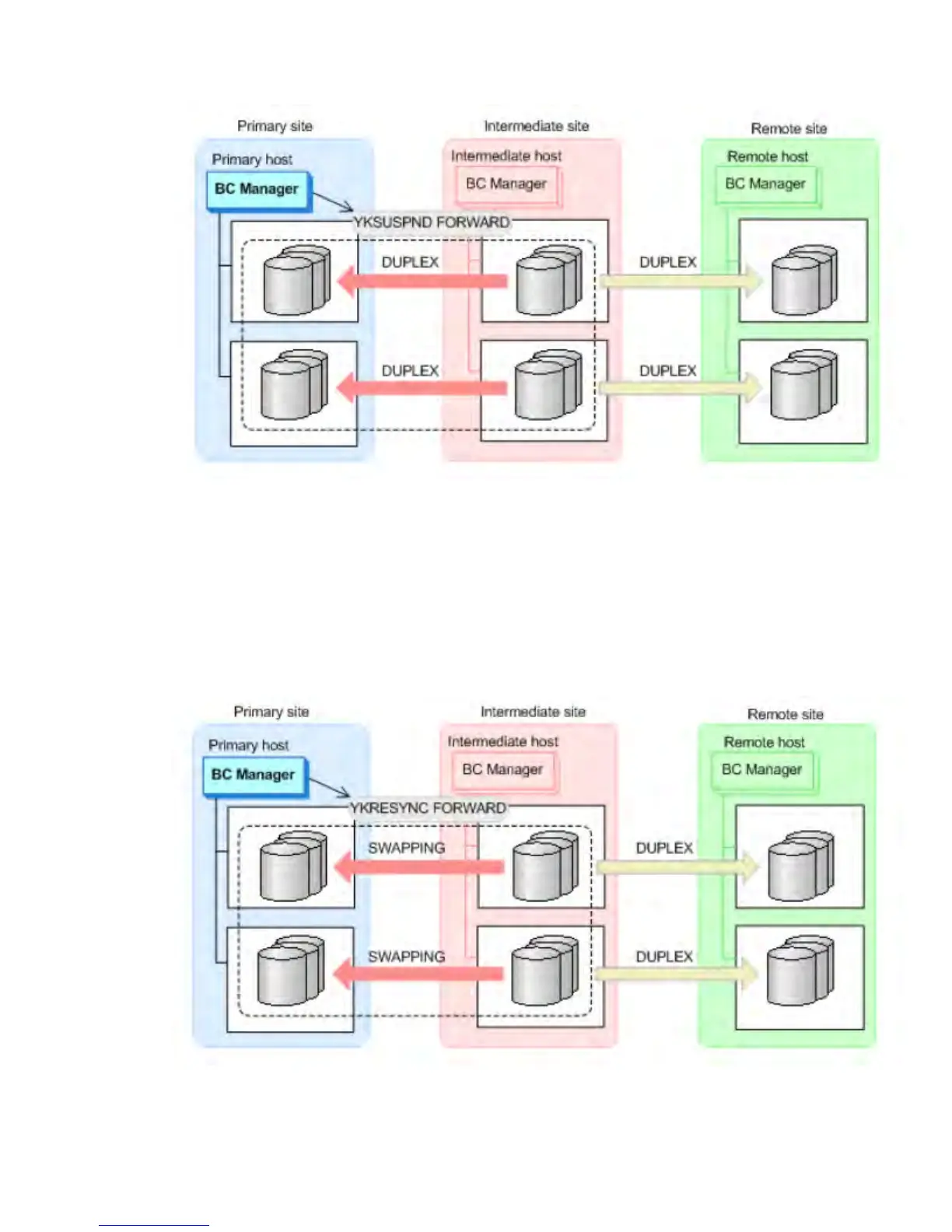 6. From the primary site, execute the YKRESYNC FORWARD command for the Continuous Access