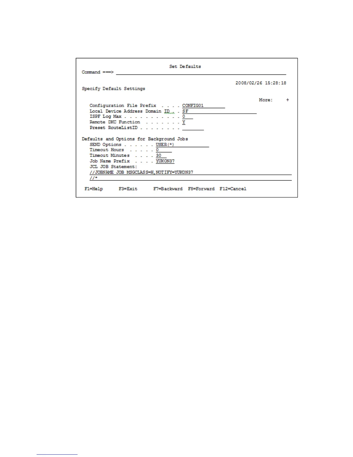 1. Display the Main Menu panel and choose 1 Set Defaults.