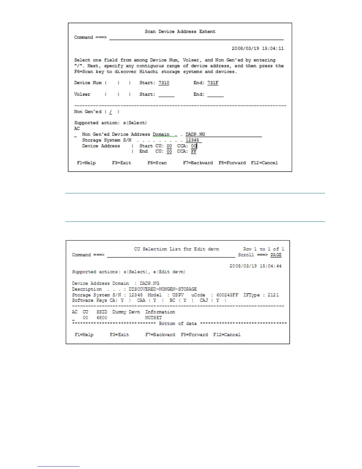 When a dummy device number is assigned, the Scan Device Address Extent panel is displayed