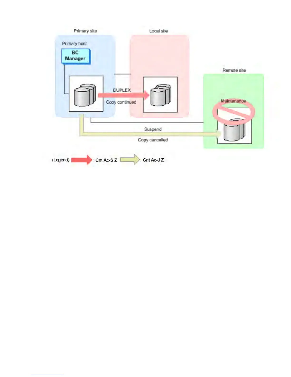Figure 15 Storage system maintenance at the remote site (3DC Multi-Target configuration)