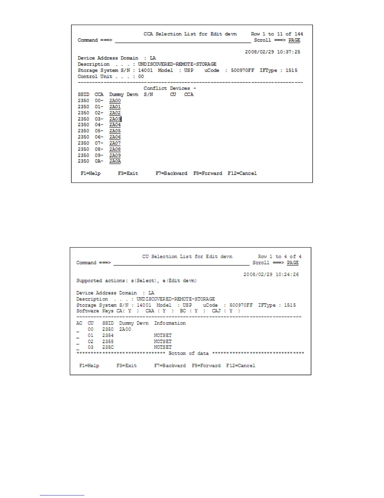 You are returned to the CU Selection List for Remote Storage Arrays panel.