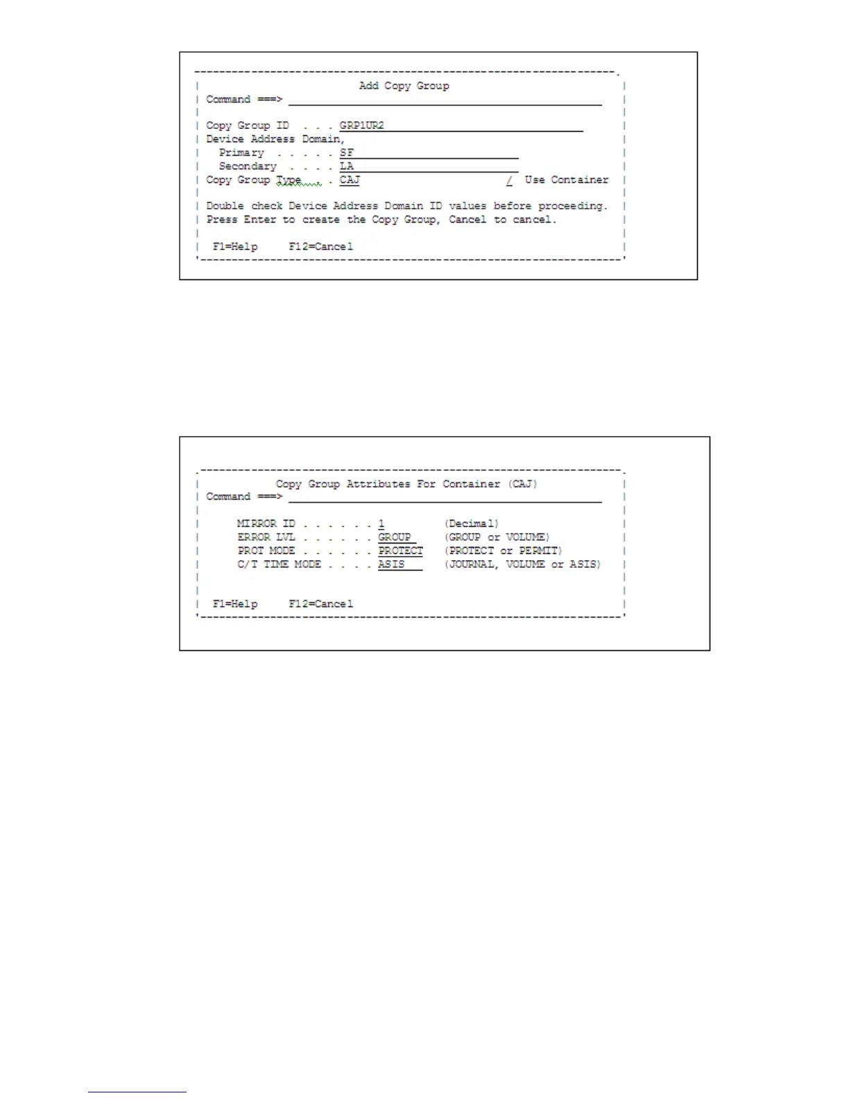 1. In the Copy Group Detail Definition panel, press the F5=Add key.