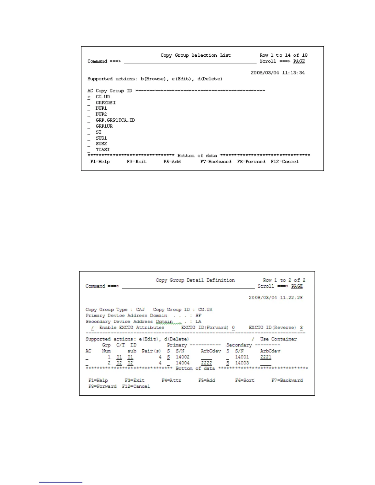 1. In the Copy Group Selection List panel, specify e in the AC for the copy group container, and
