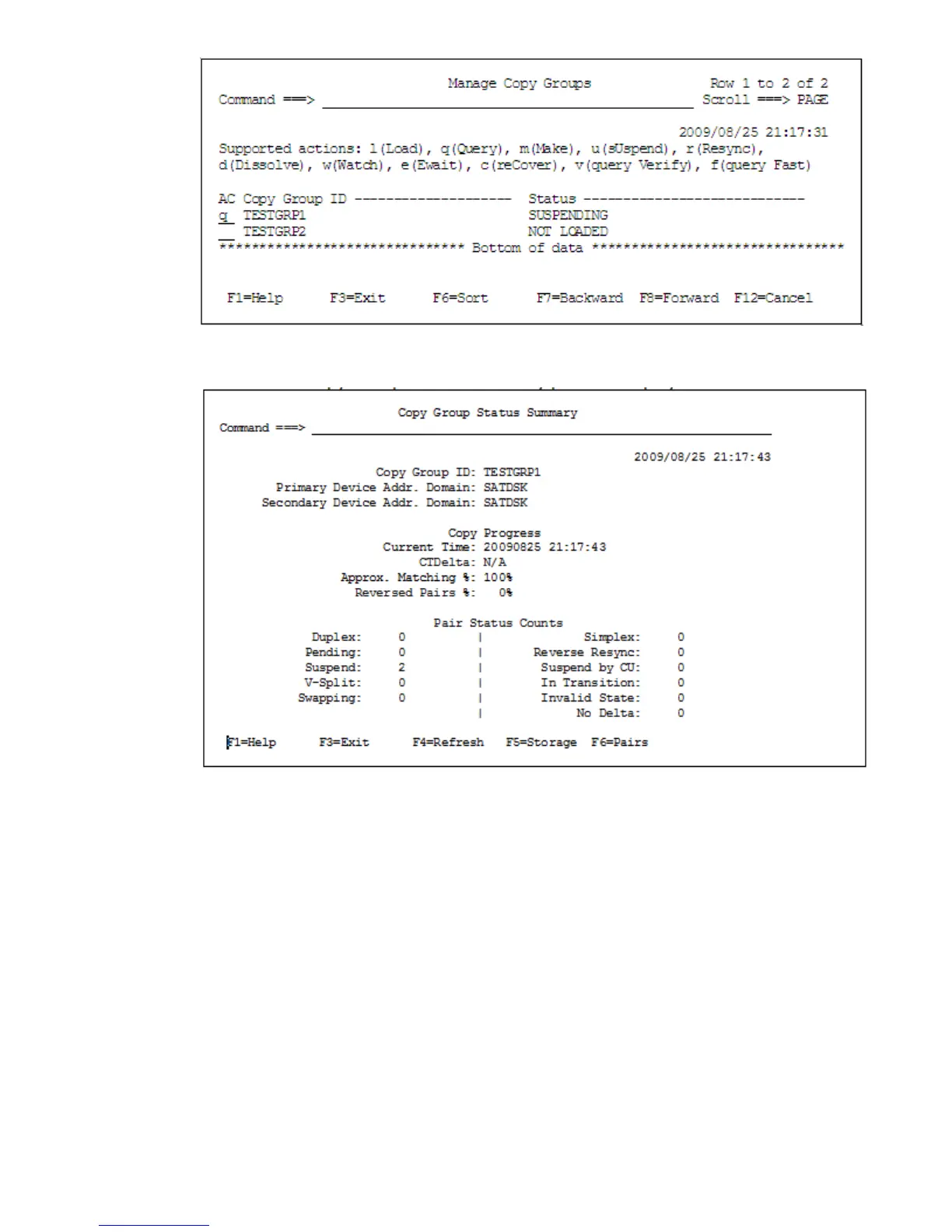 3. Specify e in the AC column of the copy group whose definition you want to change (Editing