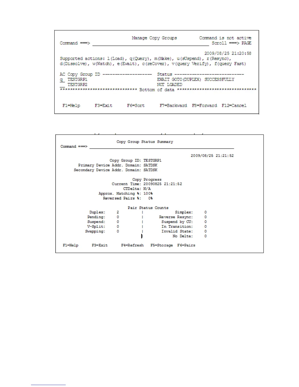 Make sure that the copy group status has been moved to the DUPLEX status.