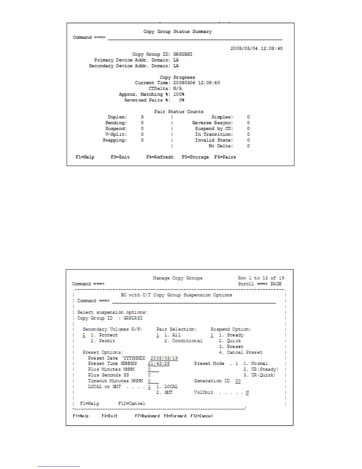 1. Specify u in the AC column of the Manage Copy Groups panel to suspend the copy group