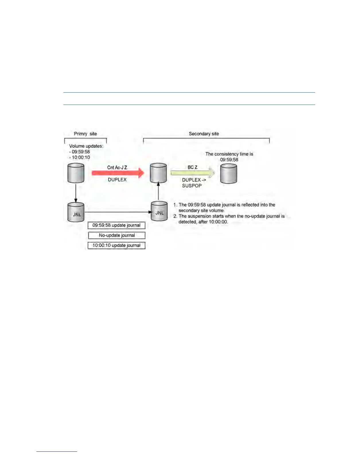 Figure 51 Copy-group suspension when a no-update journal is detected after the specified