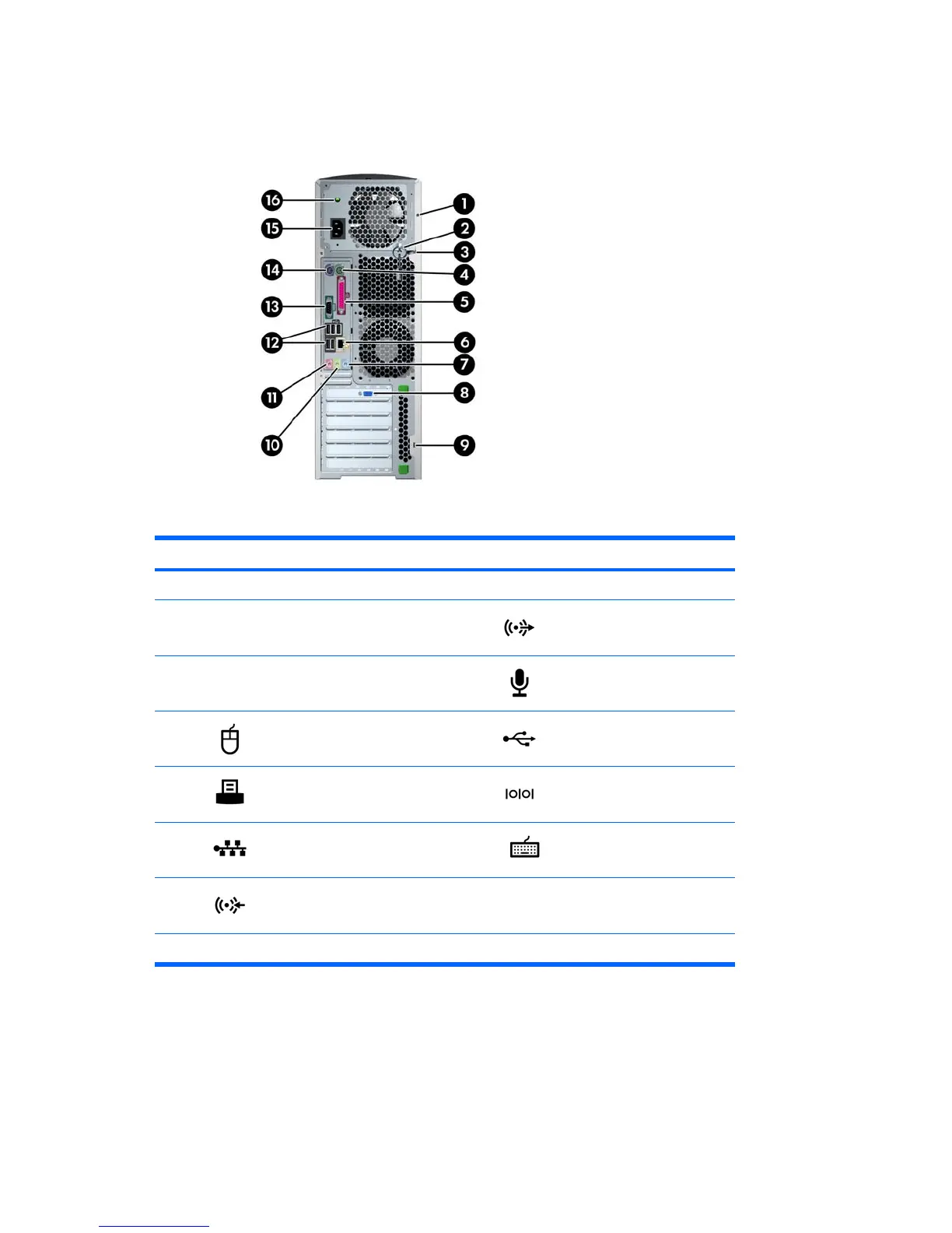 2 Side access panel key 10 Audio line-out connector (lime)