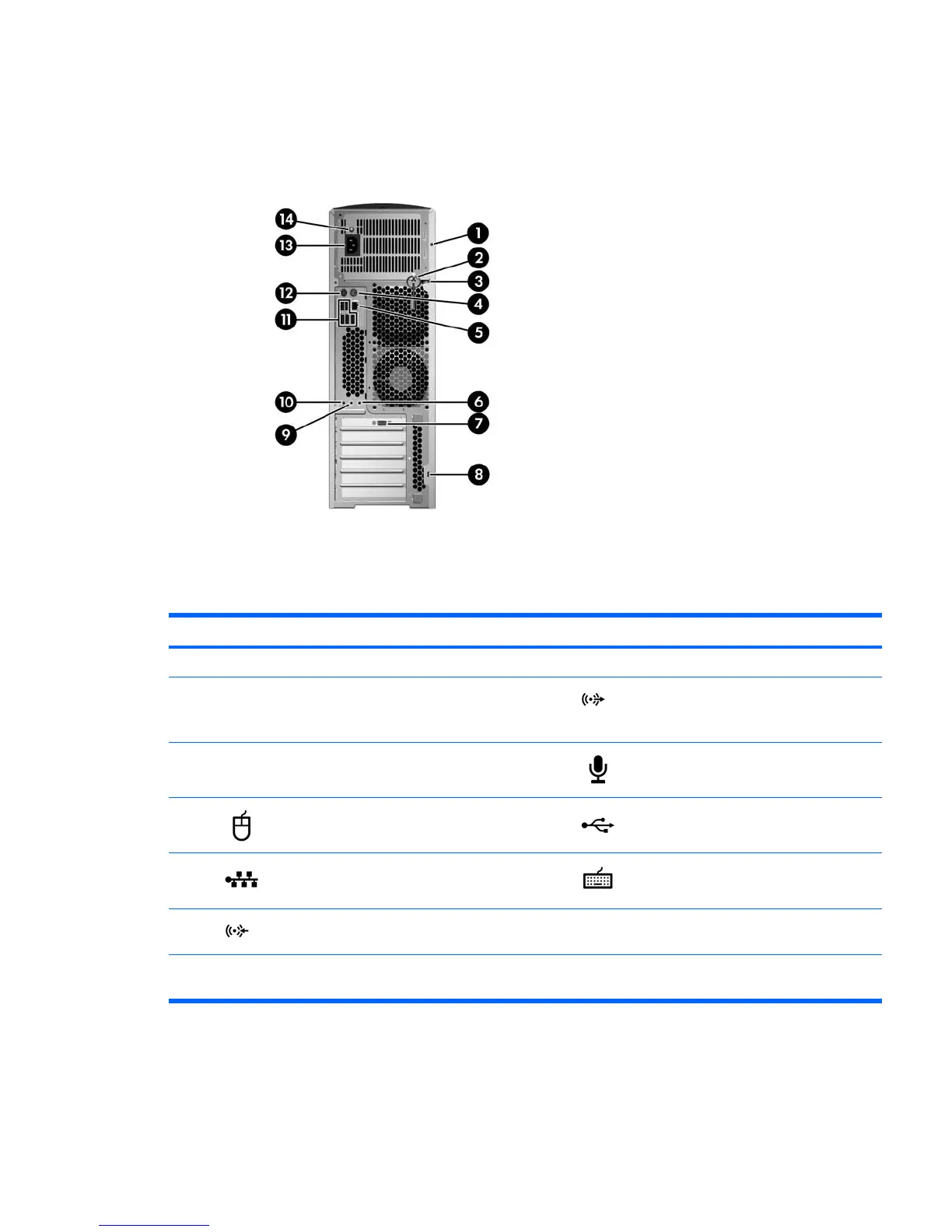 The following figure shows the rear panel components of a typical HP xw6600 Workstation.