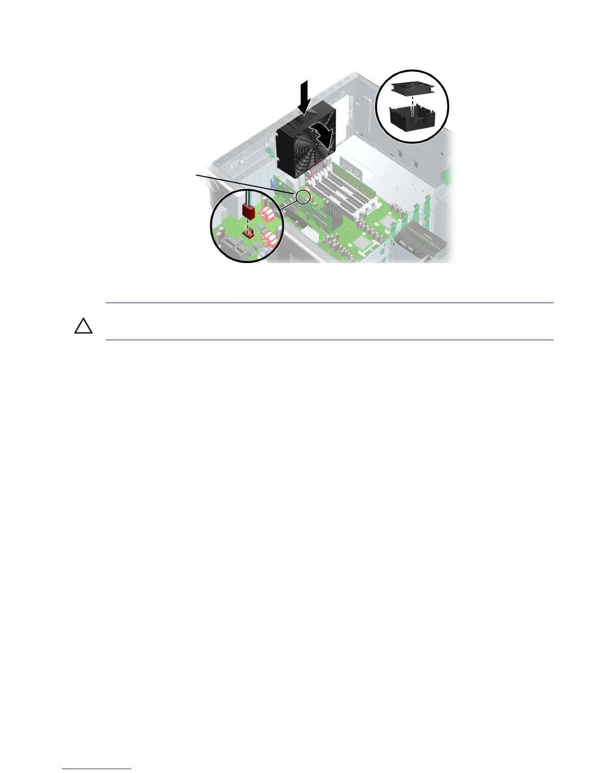 CAUTION When installing the system fan, be sure that the fan is situated so that the airflow direction is
