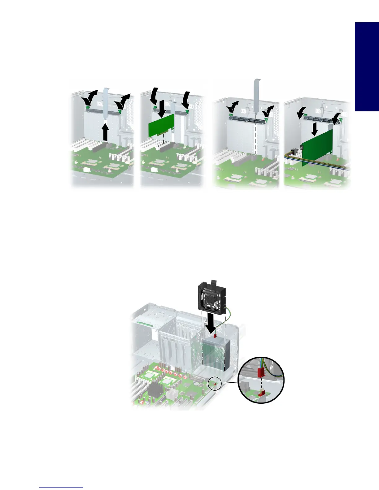 5 Close the PCI levers. If the PCI levers do not close, be sure all cards are properly seated and then try