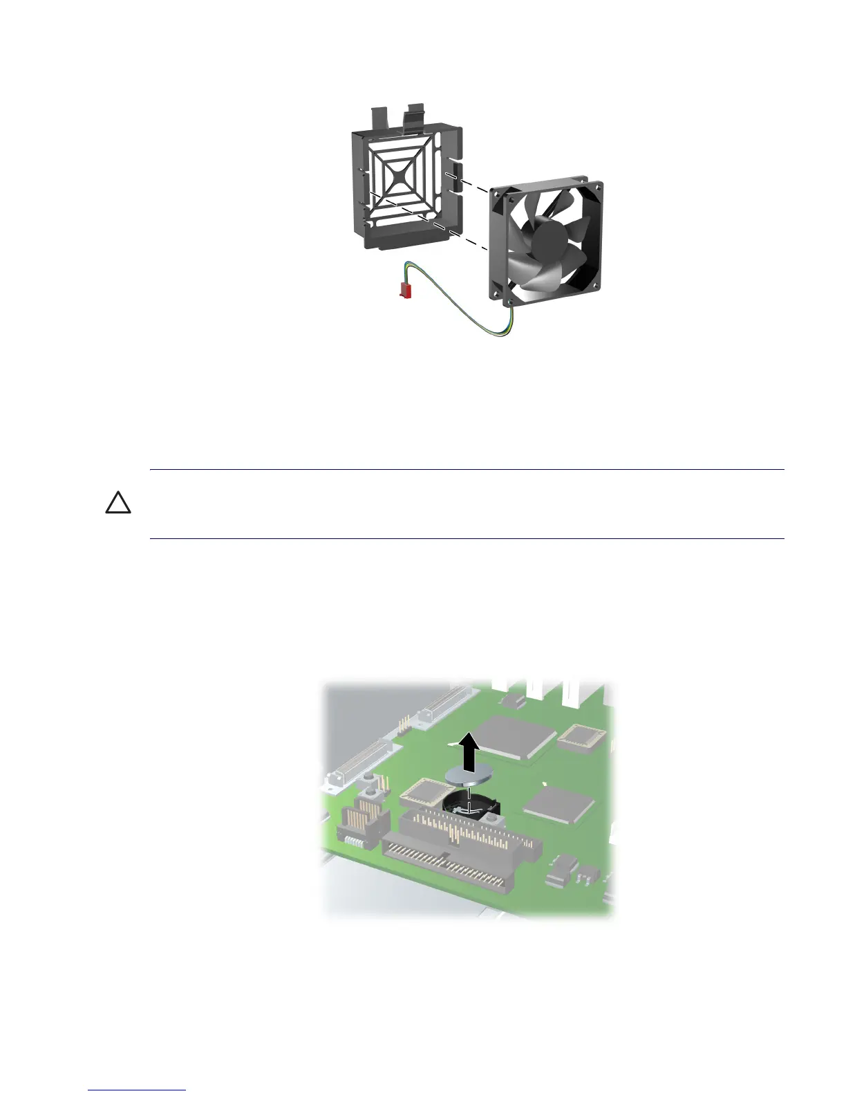 4 Remove the fan from the fan housing by applying outward pressure on the fan housing while lifting