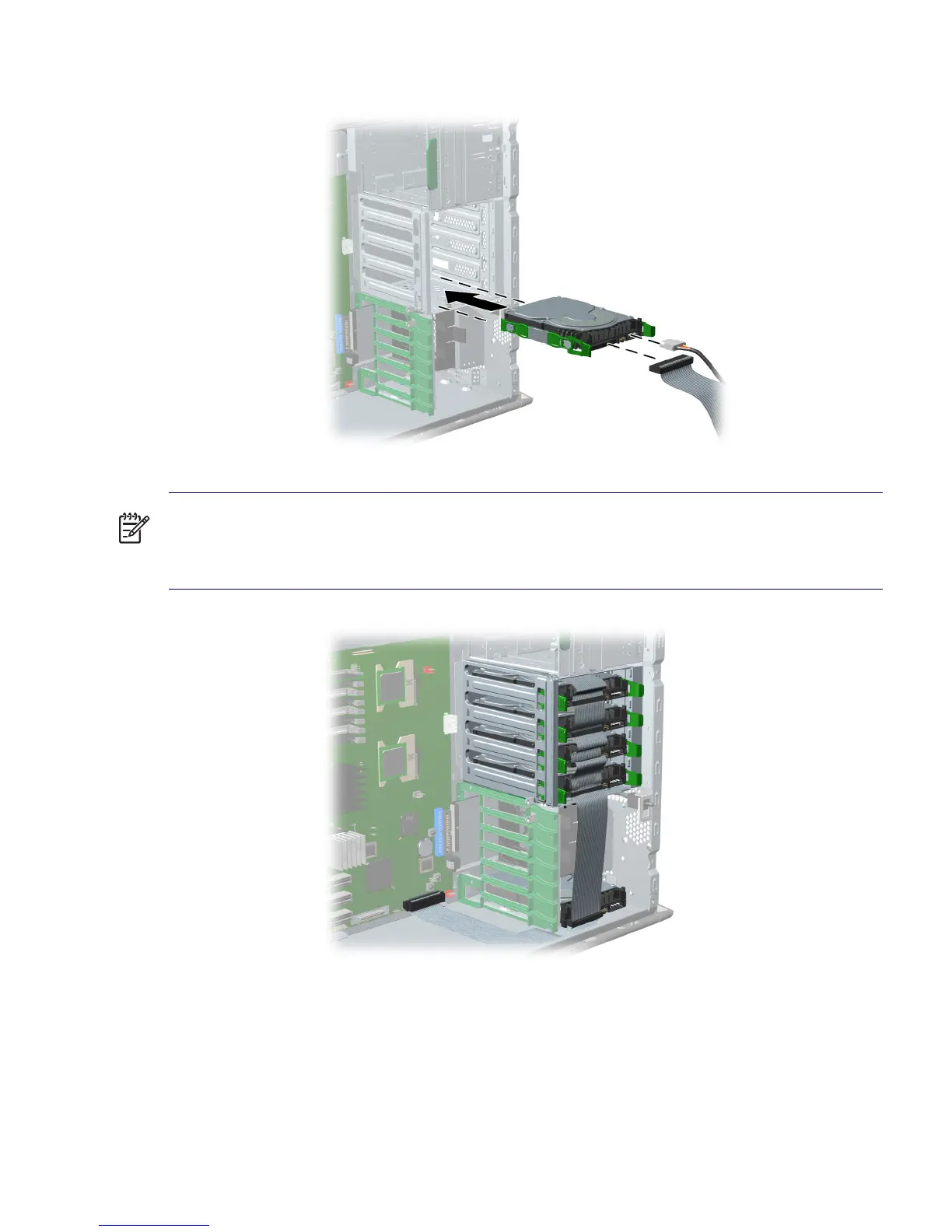 NOTE If installing a hard drive into bay 5, lay the workstation on its side and remove the three drive