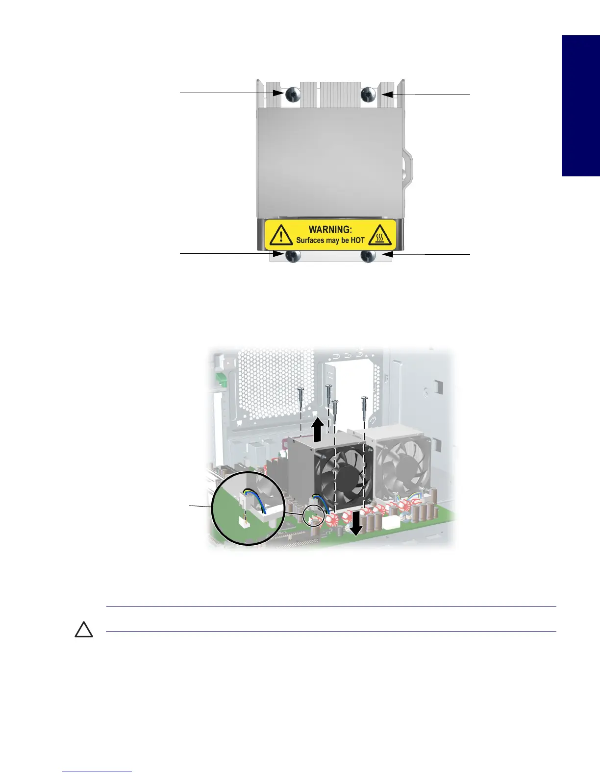 CAUTION Allow the alcohol on the processor and CPU heatsink to dry completely.