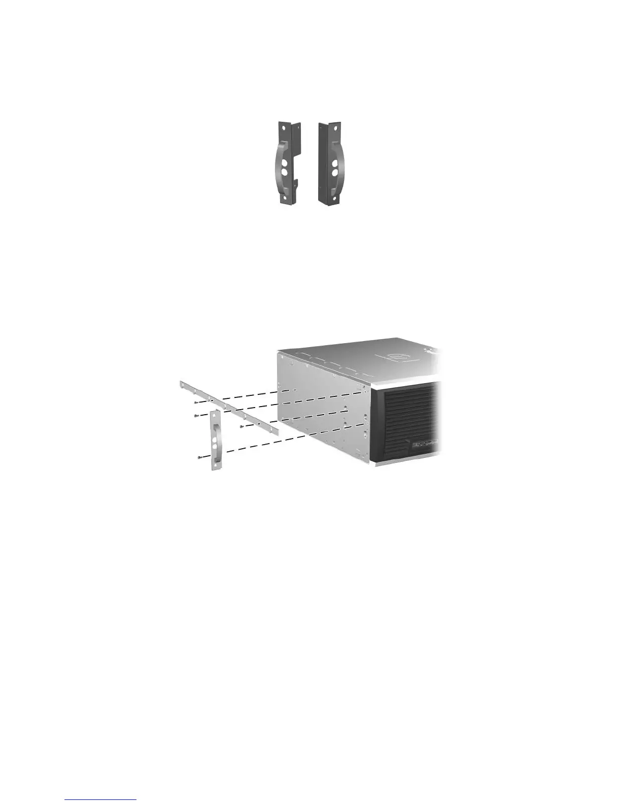 1. Align the left mounting flange with the screw holes on the left side (bottom) of the chassis.