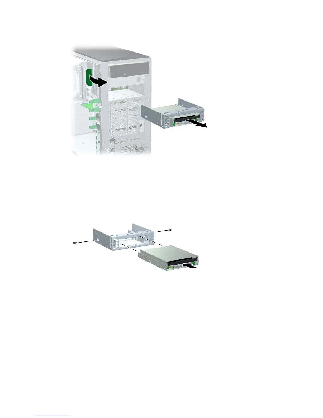 4. Remove the diskette drive from its bracket by removing the two M3 screws in the rear-most holes