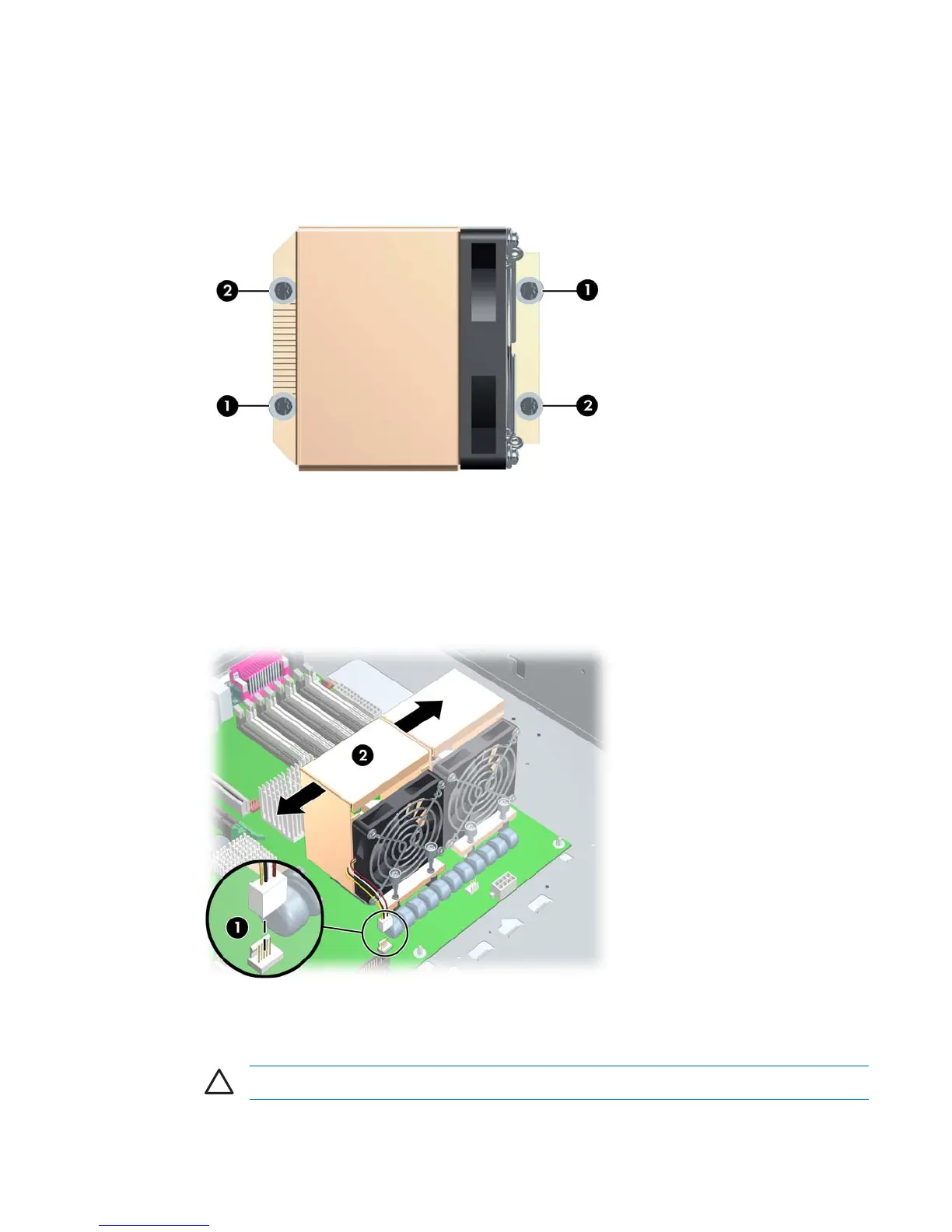 CAUTION Allow the alcohol on the processor and CPU heatsink to dry completely.