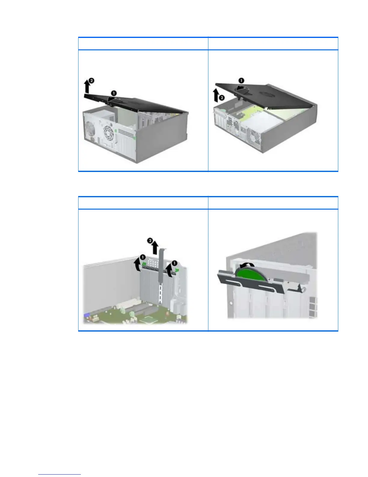 4. Raise the expansion card retention clamp and remove the expansion card slot cover as shown in