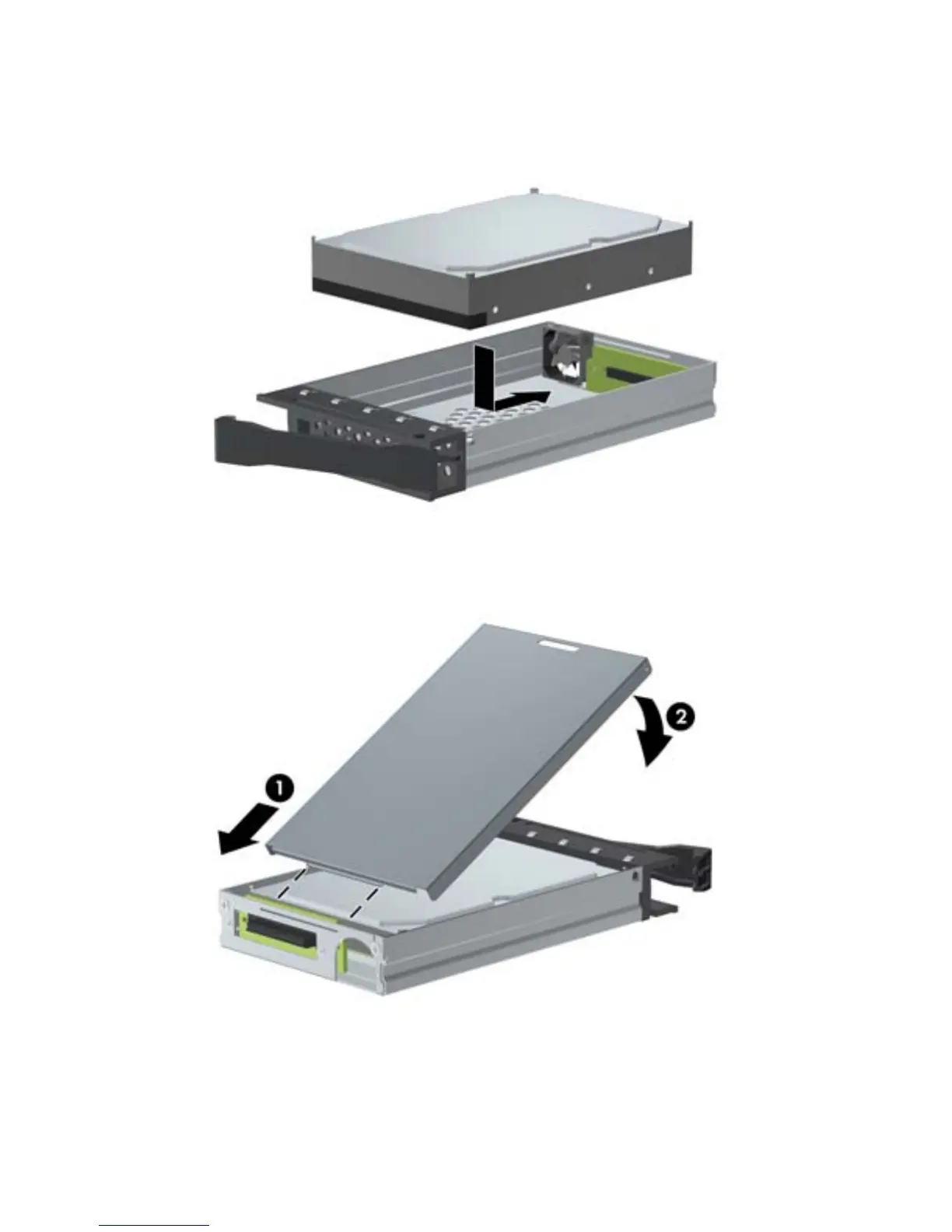 5. Slide the drive all the way to the rear end of the carrier so that the power and data connectors