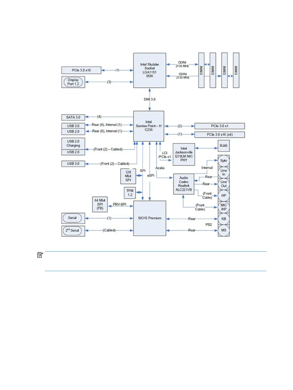 NOTE: The PCIe designators indicate the mechanical connector size and number of electrical PCIe lanes