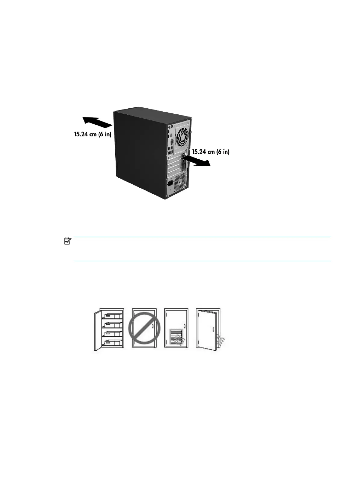 Provide at least 15.24 cm (6 inches) of clearance at the front and back of the workstation. (Workstation