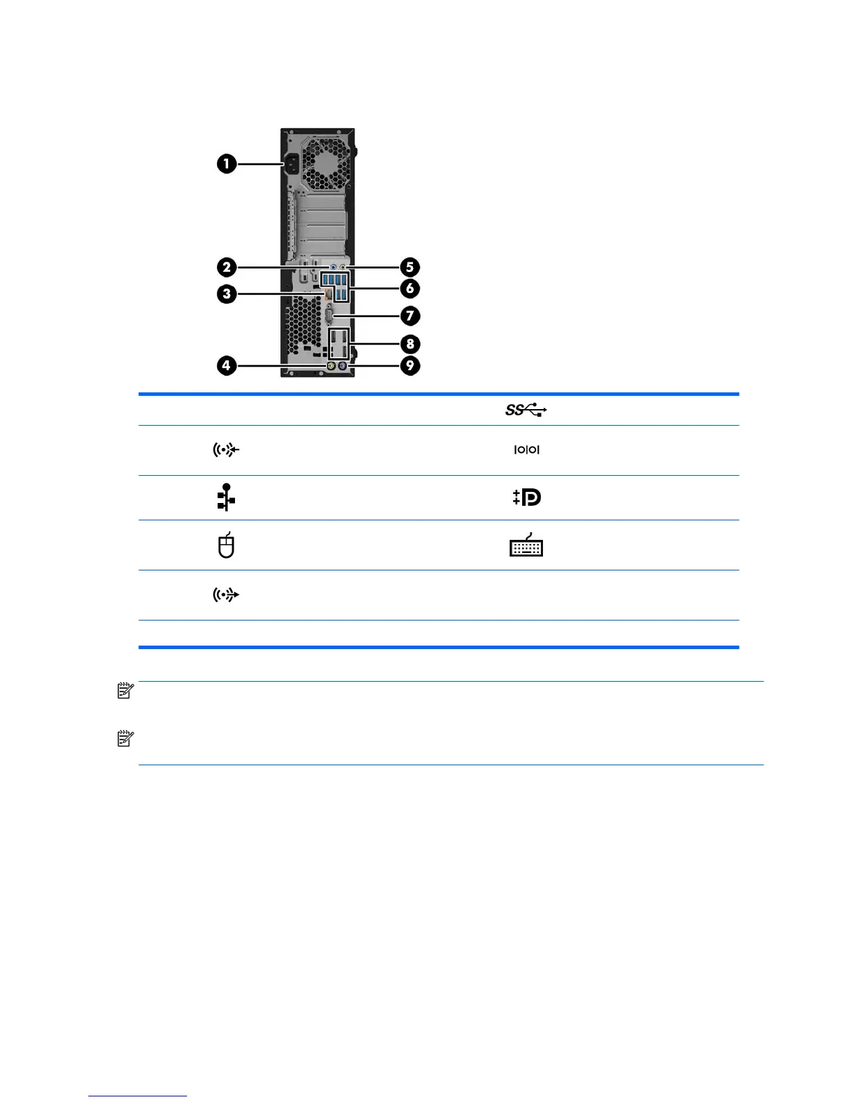 1 Power cord connector 6 USB 3.0 ports (6) (blue)
