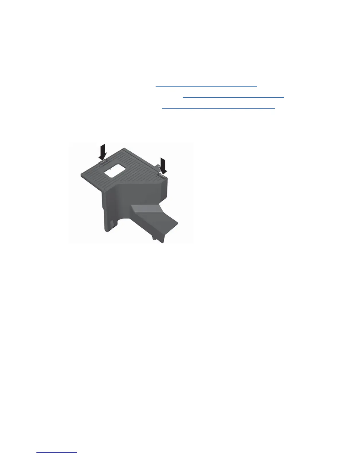 4. Press the airflow guide release latches as shown in the following figure, and guide the airflow guide