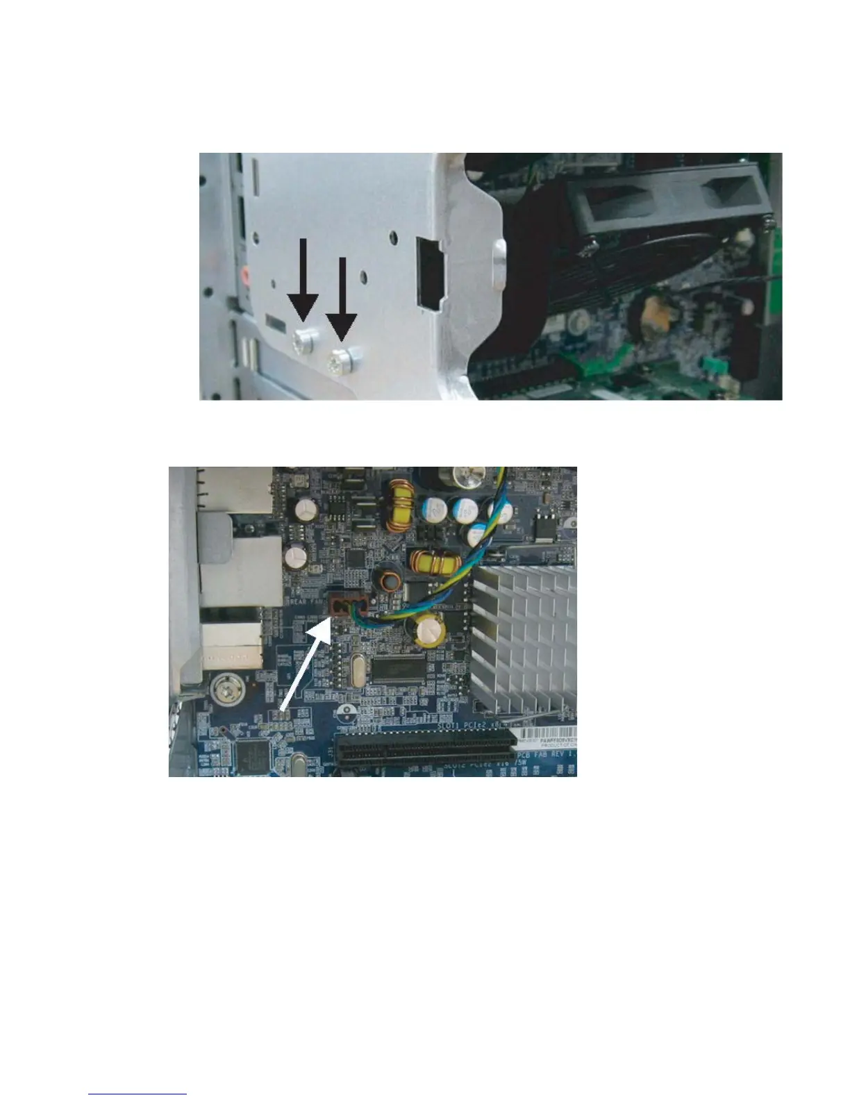 5. Disconnect the rear system fan cable from the system board as shown in the following figure.