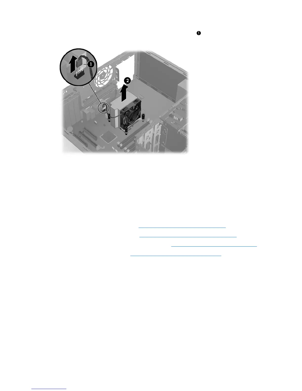 6. Disconnect the CPU heatsink fan cable from the system board as shown in the following figure.