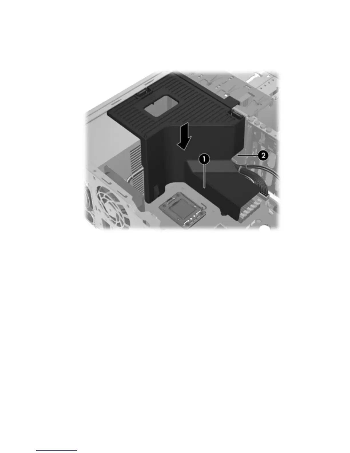 a. Place the edge of the airflow guide (1) between DIMM socket #6 and the CPU heatsink.