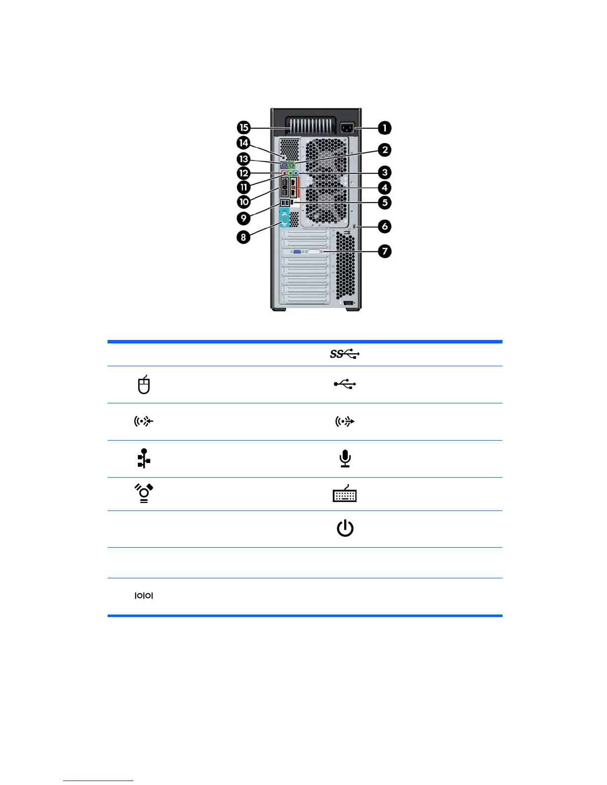 1 Power cord connector 9 USB 3.0 ports (2, blue)