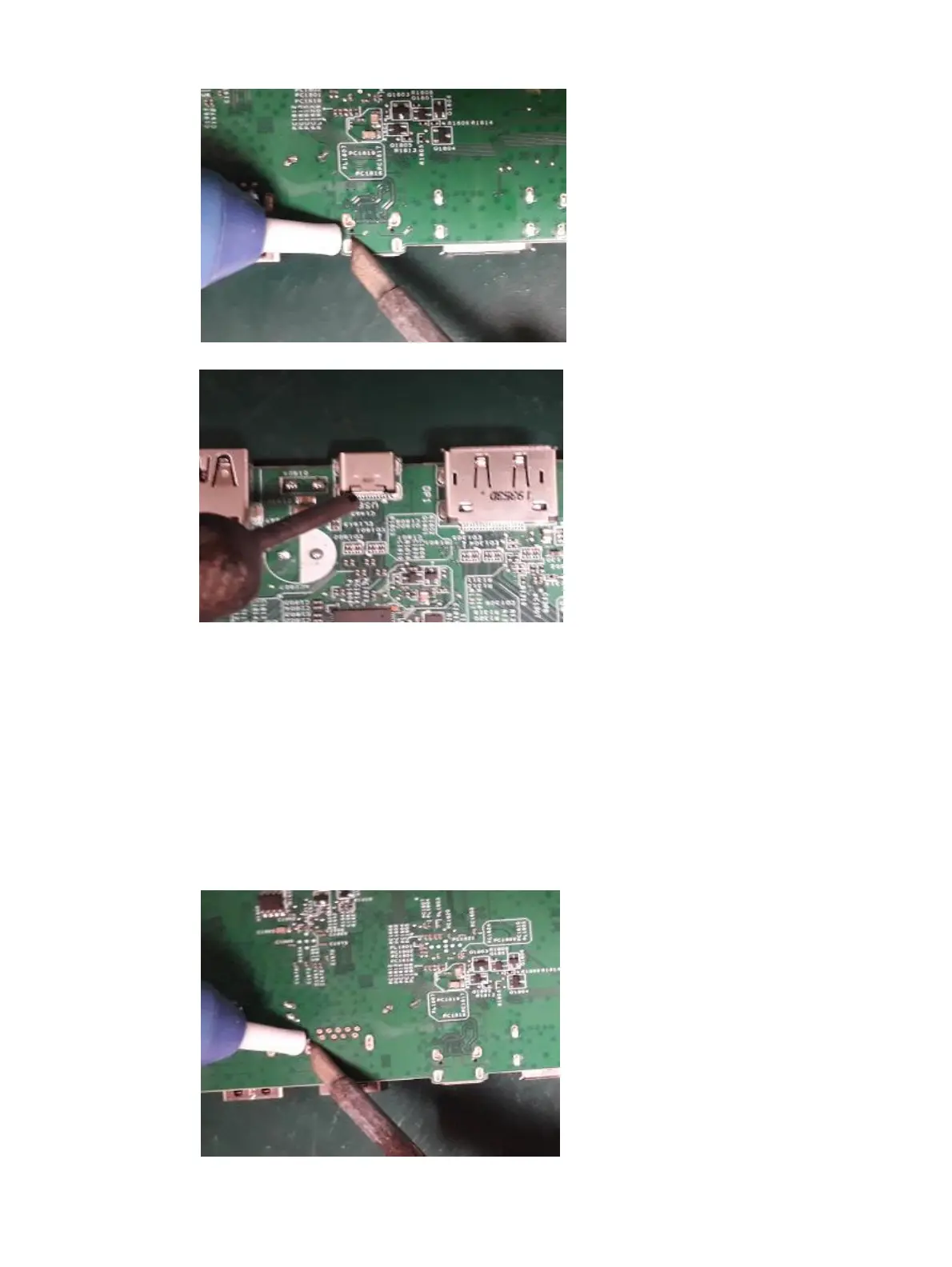 1) Use a hot air gun to melt the solder on the pins. Pin solder with soldering iron and absorber. You can gently
