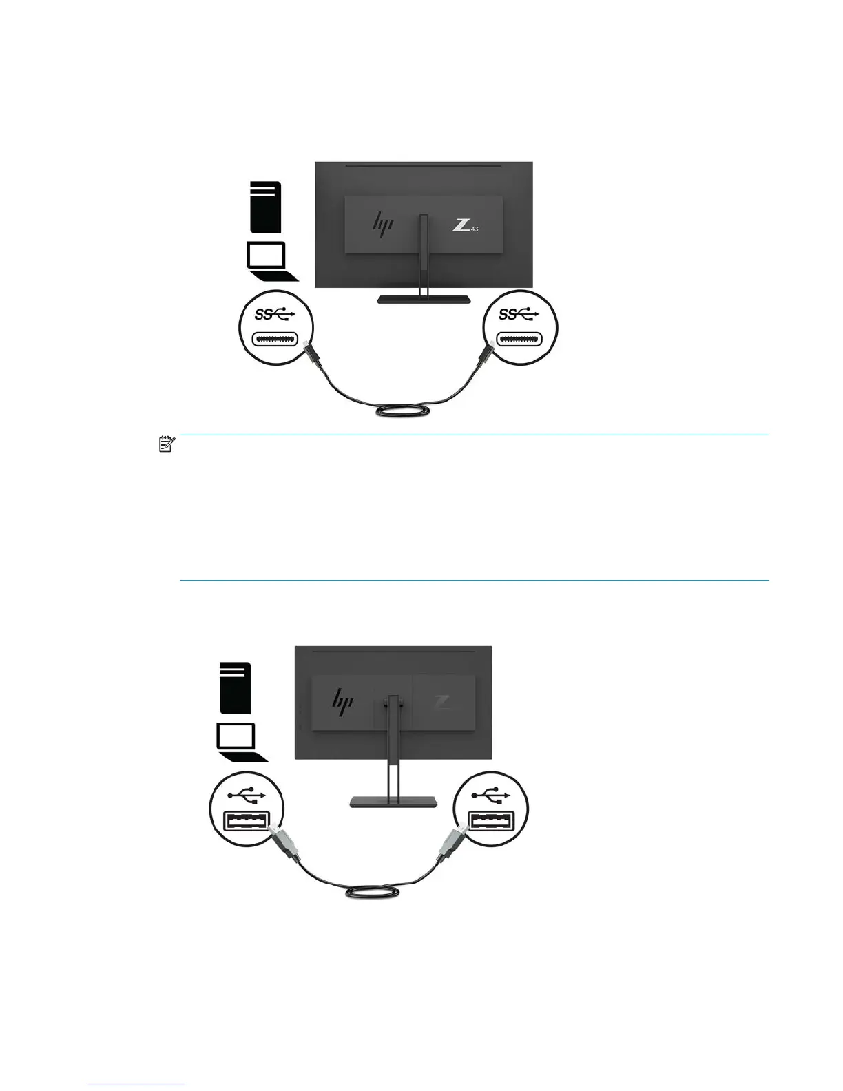 4. Connect one end of a USB cable to a USB Type-A port on the monitor and the other end to the USB port