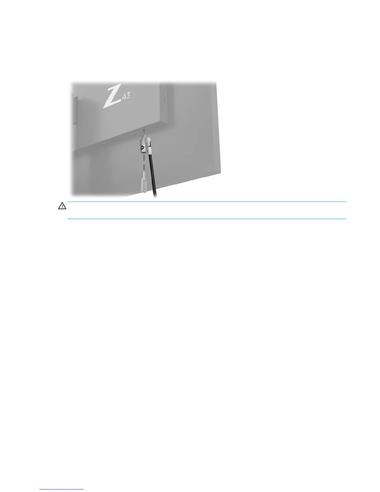 CAUTION: Use caution when adjusting the tilt, swivel, or height of the monitor if a security cable is installed.