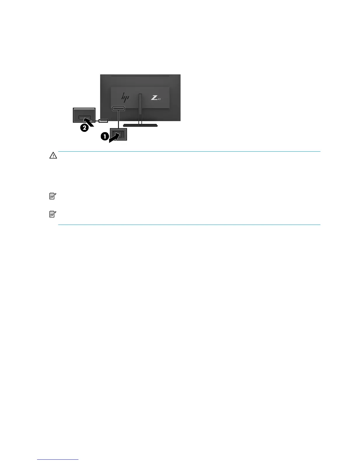 1. Set the master power switch (1) on the rear of the monitor to the On position.