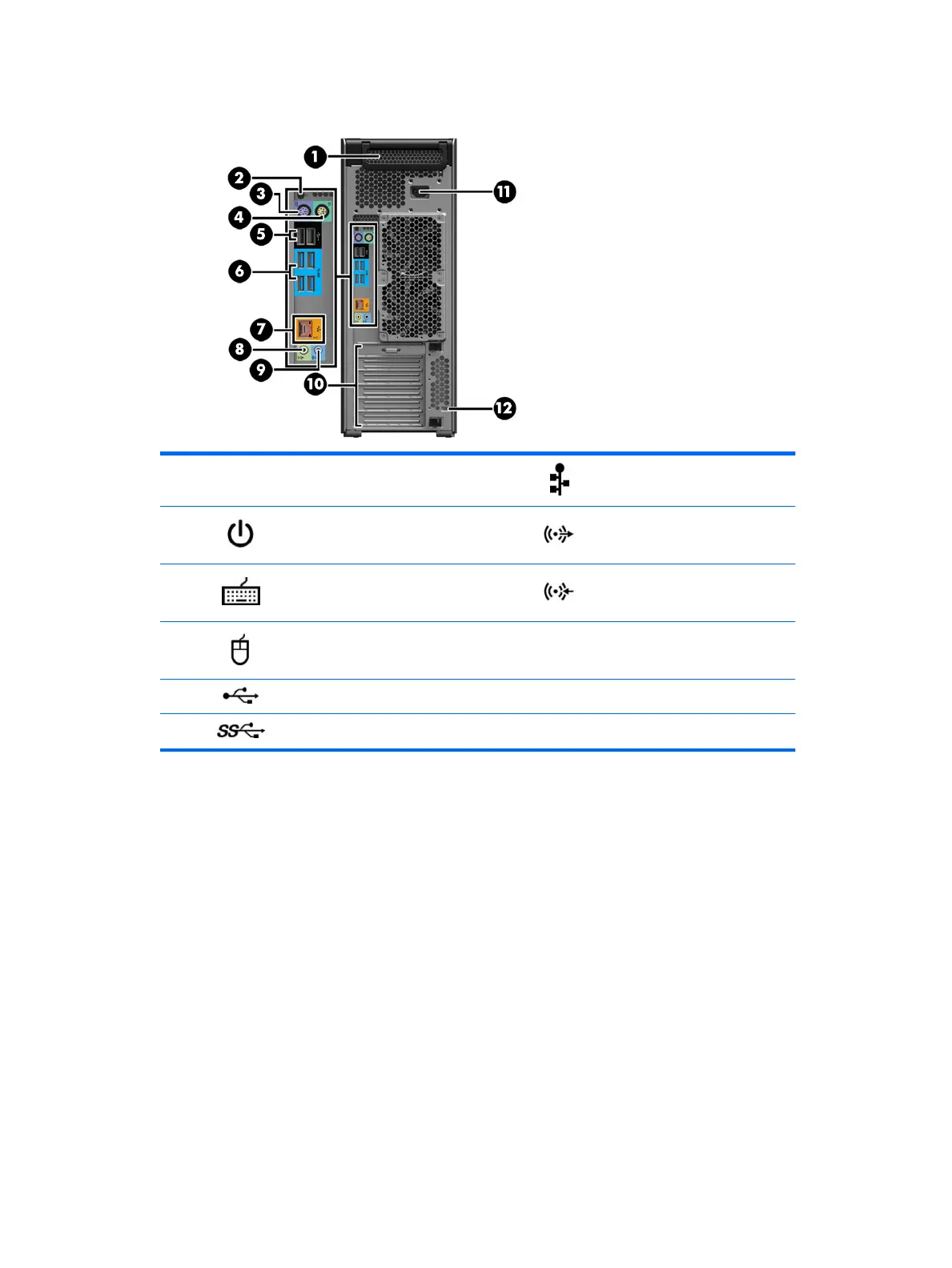6 USB 3.0 ports (4, blue) 12 Security slot