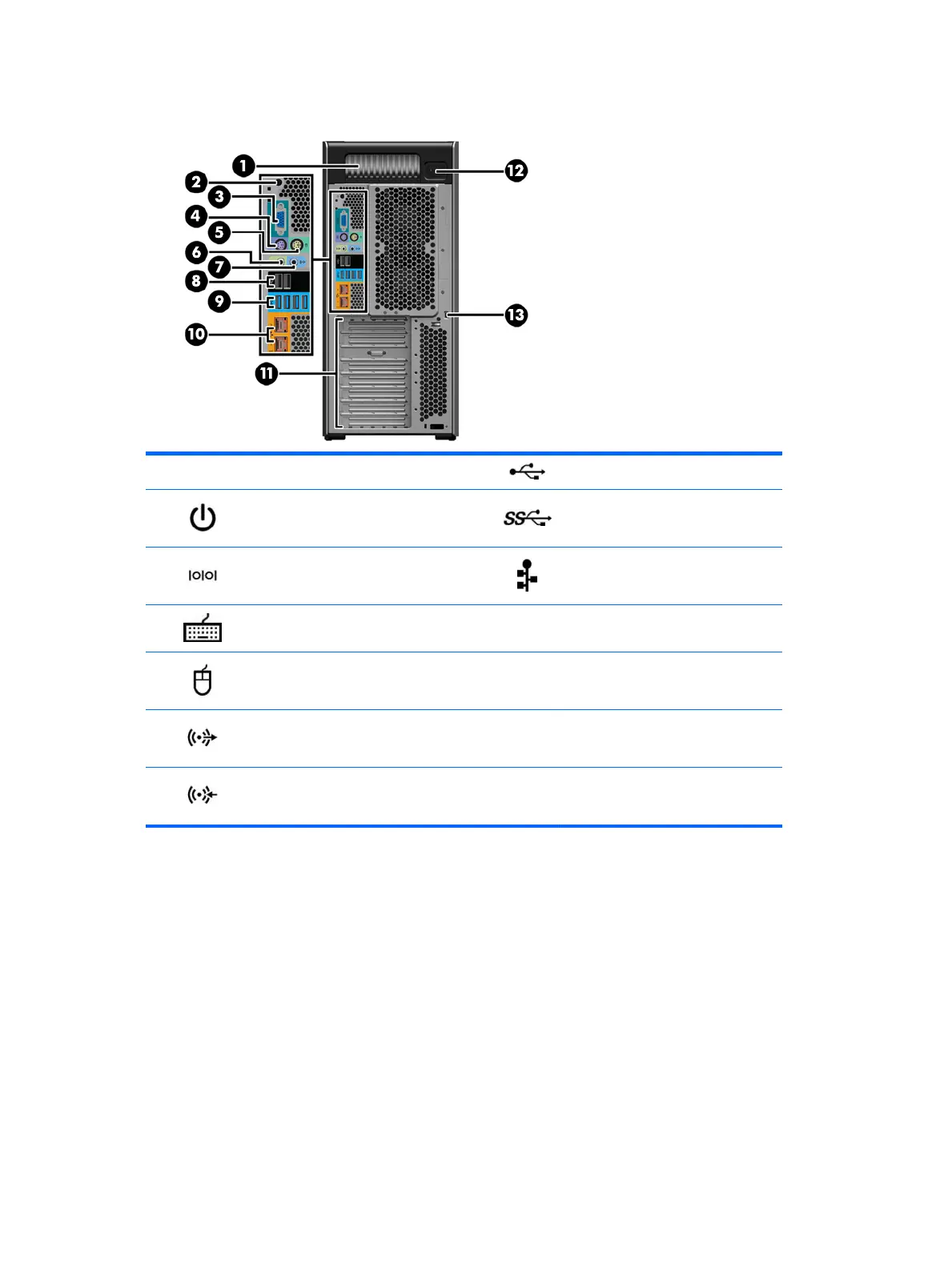 1 Power supply Built-In Self-Test (BIST) LED 8 USB 2.0 ports (2, black)