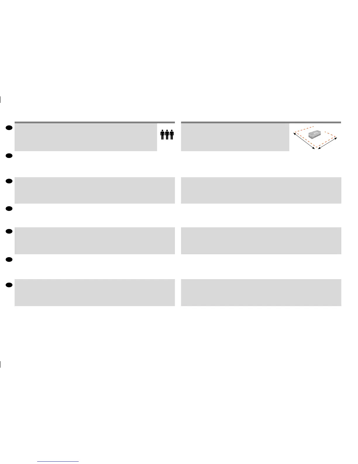 • Because the product is heavy, you may need three people to unpack it. When more than one person isneeded,