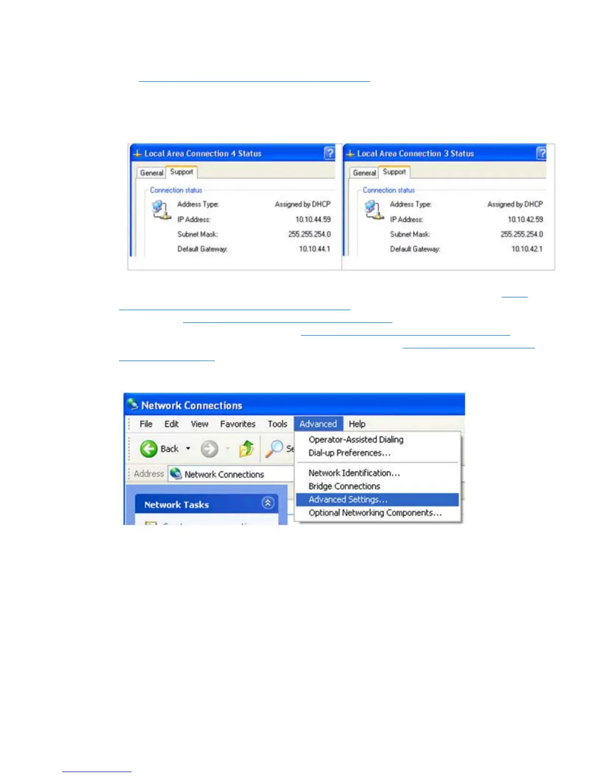 2. Double-click each LAN icon and the Support tab, which displays the network interface IP address