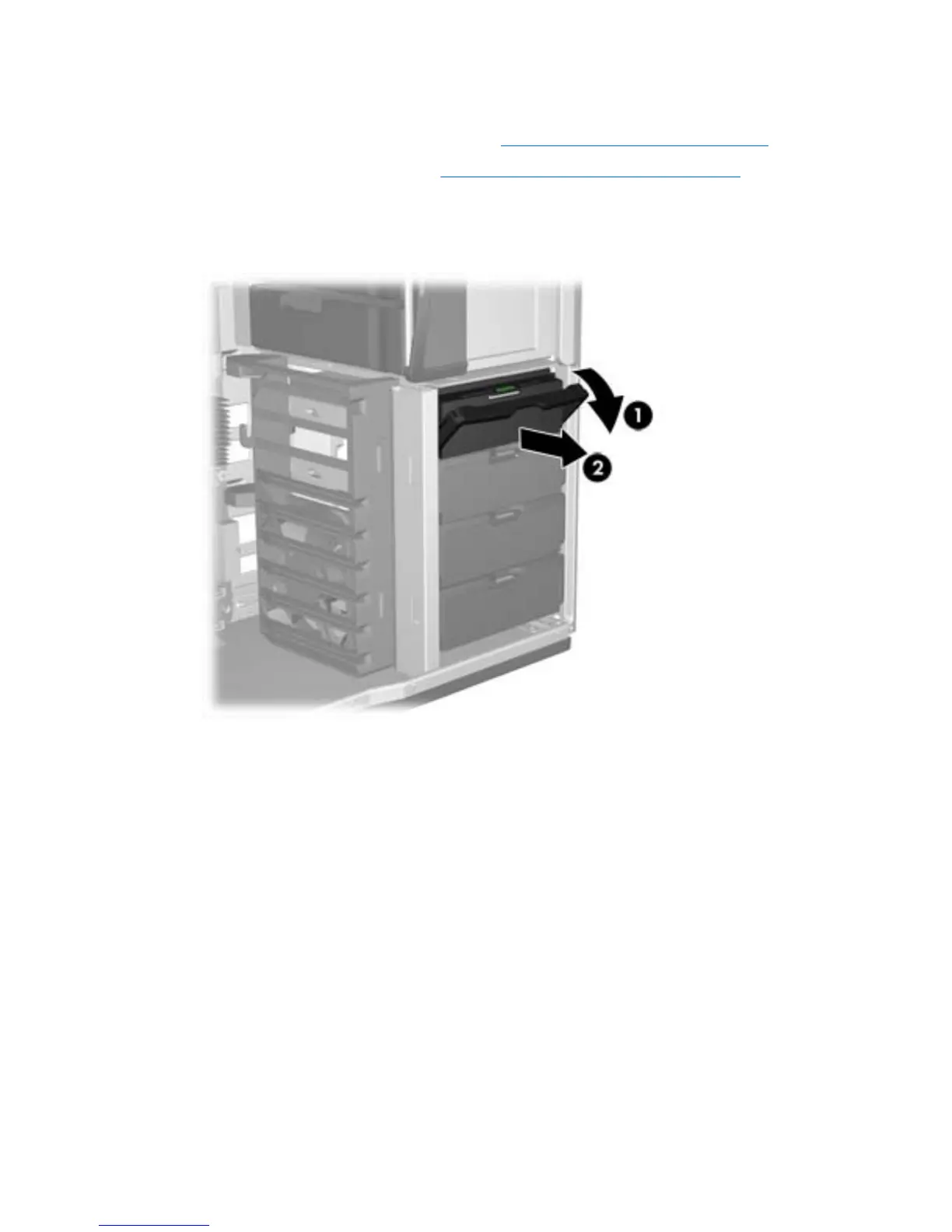 (1). Pull the drive carrier out of the hard drive bay (2), as shown in the following figure.