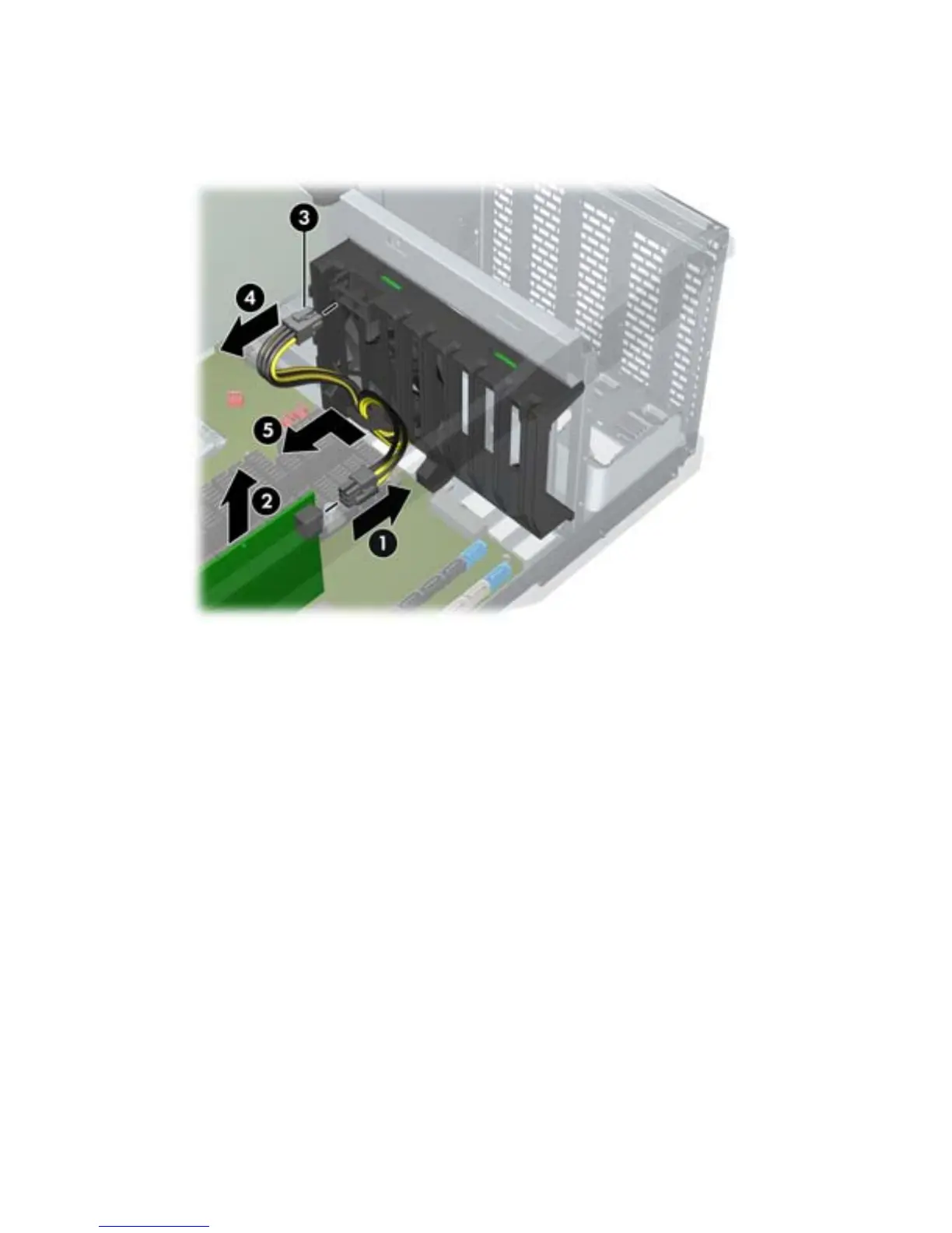 Remove the cables from the retention hook on the expansion card guide/front fan holder (5), as