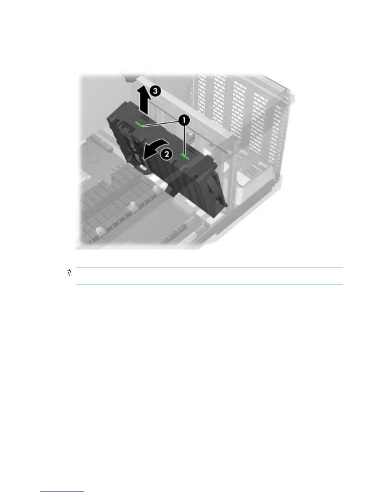 Rotate the assembly (2), and then lift it out of the chassis (3).